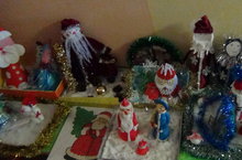 Мы организовали конкурс поделок "Парад Дедов Морозов и Снегурочек", изготовленных своими руками. Каждая семья проявила фантазию и свой творческий потенциал.