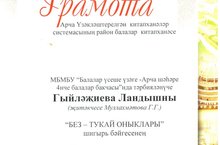 Арча Үзәкләштерелгән китапханәләр системасының район балалар китапханәсендә "Без- Тукай оныклары" бәйгесе булып үтте. Мәктәпкә әзерлек төркемендә тәрбияләнүче Гыйләҗиева Ландыш бәйгедә "Карлыгач" шигырен сөйләп, "Иң күләмле әсәр сөйләүче" номинациясендә җиңеп чыкты. Ландышны котлыйбыз һәм киләчәктә зур уңышлар телибез!