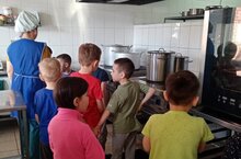 Каждый человек мечтает обрести в жизни свое любимое дело, доставляющее радость ему самому и приносящее пользу людям. Мир профессий в обществе – сложная, динамичная, постоянно развивающаяся система. Поэтому очень важно познакомить ребенка с профессиями, рассказать о тех характерных качествах, которые требует та или иная профессия. Сегодня дети подготовительной к школе группы познокомились с профессией повар. Совершили экскурсию на кухню.