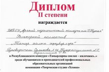 24 октября в Чистопольском многопрофильном колледже состоялся Республиканский конкурс «Тамырларны саклап – киләчәккә...» среди обучающихся и преподавателей профессиональных образовательных организации, где фольклорный коллектив «Татар халык җәүәрләре» нашего колледжа занял 2 место в номинации «Творческая студия «Хәзинә».