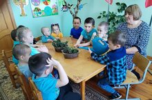 Посадка комнатных растений и лука вместе с воспитанниками детского сада.