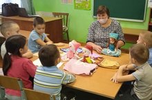 Кечкенәләр төркеменә йөрүче балалар математика шөгылендә геометрик фигуралар белән таныштылар, төсләрен әйтергә өйрәнделәр