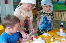 Цель: Развитие творческих способностей дошкольников через аппликацию, совершенствование навыка пользования ножницами и изменения формы предмета способом срезания уголков детали.
