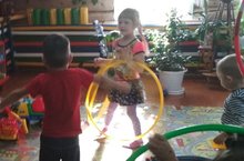 Обруч еще называют хулахуп. С его помощью детям можно делать разные упражнения, как простые, так и сложные, а также можно крутить вокруг талии один или несколько обручей. Этот предмет не требует никаких инструкций, он безопасен для детей. Занятия помогают тренировать дыхание, улучшать тонус мышц и сосудов, если обруч крутить, он делает массаж от бедер до грудной клетки.
