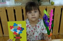 Цель: создание подарка для мам методом аппликации, повторить названия растений родной природы.