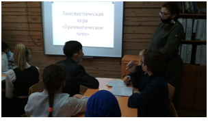 В рамках Недели русского языка в "МБОУ Разъезд _Корсинская ООШ" было проведено "Лингвистическое лото" среди учащихся 5-9 классов, приуроченное Году родных языков и Народного Единства. Две команды школьников соревновались в сообразительности и смекалке( «Дружба», «Победа»). Победила команда «Дружба» -