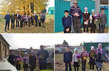 1 октябрь - Өлкәнәр коне уңаеннан, бүген безнең мәктәп укучылары авылыбыздагы барлык өлкәннәрне бәйрәм белән котлап йөрделәр.