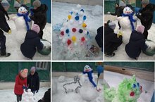 Сегодня учащиеся нашей школы вместе с учителями закончили делать снежные фигуры. Хотя снега в этом году не много, мы постарались сделать фигуры большими, красивыми и яркими.