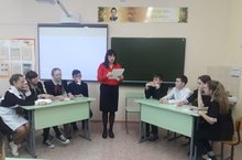 Сегодня, 31 января, на базе АСООШ№7 учитель русского языка и литературы Сафиуллина Р.Г. дала открытый урок по русскому языку в 8 классе на тему: « Урок обобщения. Однородные члены предложения». Урок прошел интересно. Ученики активно работали на уроке, показали свои знания по пройденной теме. Учитель продемонстрировал свое педагогическое мастерство. Урок был проведен в рамках Недели русского языка и литературы.
