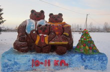 Группа учителей и учащихся МБОУ "АСОШ №7" лепят снежные фигуры на стадионе в Арске.