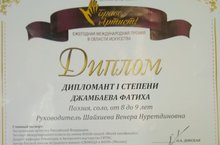 Ученица 1А класса Джамбаева Фатиха стала дипломантом I степени в номинации поэзия и соло, во II Ежегодной Международной премии в области искусства "Браво, артист!" Руководитель: Шайхиева В.Н.