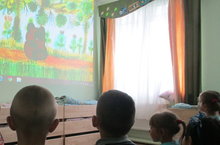 Без бүген мульфильмда кунакта булдык.Әйе,-әйе,чып-чынлап әйтәбез.Без телевизордан кечкенә генә итеп карап өйрәнгән Винни пух исемле аю малае безнең үзебезңнең зурлыкта булып күренде.Аны апаларыбыз шулай зур итеп махсус җайланмадан күрсәткәннәр икән,шуңа шулай зур булып күренгән дә инде.