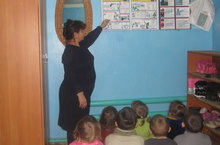 Татар теле шөгыле барышында , тәрбияче апалары сөйләгән әкиятләрне балалар бик яратып тыңлыйлар. Ә әкиятне сәхнәләштереп, шул әкият герое булып үзләре уйнаулары балаларны бигрәк тә кызыксындыра. Алар бер-берсе белән аралашып, сөйләм телләрен үстерәләр.