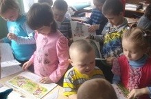 Китапханәче алып кергән китапларны тәрбияче апаларыбыз белән бергәләп укыйбыз.