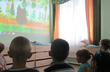 Без бүген мультфильмда кунакта булдык.Әйе,-әйе, чып-чынлап әйтәбез.Без телевизордан кечкенә генә итеп карап өйрәгән Винни пух исемле аю малае безнең үзебезнең зурлыкта булып күренде.Аны апаларыбыз шулай зур итеп махсус җайланмадан күрсәткәннәр икән,ул шуңа шулай зур булып күренгәдә инде.