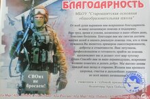 Махсус хәрби операциядә хезмәт итүче солдатларыбызга актив рәвештә ярдәм итеп торганы өчен, мәктәбебез Арча Волонтерларының рәхмәт хаты белән бүләкләнде.