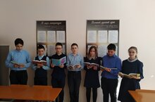 Учащиеся нашей школы читали патриотические стихи великих русских поэтов в знак протеста против запрета русской культуры за рубежом. Прозвучали следующие произведения: А.С.Пушкин "Клеветникам России", А.Ахматова "Молитва", Ф.Тютчев "Напрасный труд" и др.