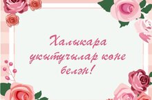 Сезне чын күңелебездән һөнәри бәйрәмебез- Укытучылар көне белән котлыйбыз! Сезгә бәрәкәтле озын гомер, көч-куәт, бетмәс- төкәнмәс йөрәк җылысы, иман байлыгы, күңел тынычлыгы, сәламәтлек, катлаулы һәм җаваплы хезмәтегегездә зур унышлар телибез. Киләчәк көннәрегез матур хезмәт нәтиҗәләре алып килсен, якыннарыгызның кадер-хөрмәтен, игелеген тоеп, бәхетле яшәргә язсын. Күңелләрегез һәрчак көр, килер көннәрегез имин булсын!