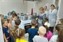 С целью ознакомления с профессией повара воспитанники побывали на кухне детского сада, где наблюдали за процессом приготовления пищи. В ходе экскурсии, ребята познакомились с работниками кухни. Беседовли, задавали свои вопросы. Рассказали взрослым о любимых блюдах в детском саду. Были удивлины размерами разной посуды. В завершении экскурсии дошкольники поблагодарили всех за заботу, за вкусную полезную пищу.