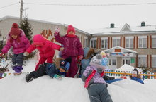 Украшаем территорию детского сада.Лепим из снега фигурки.