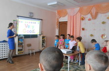 Инглиз түгәрәгендә балалар бик теләп шөгелләнәләр.Раушания апалары аларга кызыклы шигырьләр,сүзләр өйрәтә.Балаларга бик ошый.