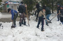 Сегодня учащиеся школы вышли на субботник.