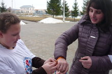 24 ноября участники проекта "SMS-дети"провели акцию "Здоровая мама-здоровый ребенок". СМС-дети организовали разъяснительную работу по ЗОЖ, завязывали оранжевые ленточки на запястьях- цвет солнца, плодородия, способствовавшей продлению рода.