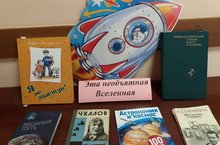 В школе была организована книжная выставка, посвященная Дню Космонавтики.
