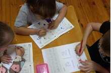 Мәктәпкәчә әзерлек төркеме балалары белән эш дәфтәрләрендә эшләү.
