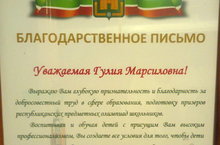 Мәктәбебезнең татар теле һәм әдәбияты укытучысы Гыйбадуллина Гөлия Марсил кызы мәгариф өлкәсендәге тырыш хезмәте һәм татар теленнән республика күләмендә үткәрелгән олимпиадага призер әзерләве өчен Арча муниципаль район башлыгы И.Г. Нуриевның Рәхмәт Хатына лаек булды. Һөнәрдәшебезгә киләчәктә дә зур уңышлар, сәламәтлек, бетмәс көч һәм энергия телибез.