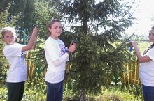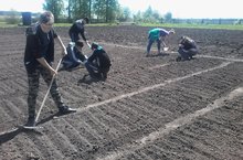 Мәктәп яны тәҗрибә участогында эшләр дәвам итә. Бүген укучылар түтәлләр ясап, суган утырттылар.