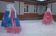 Мәктәп алдында безне Кыш бабай һәм Кар Кызы каршы ала.