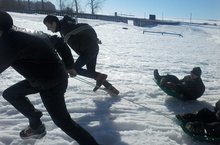 Бүген Язны каршылау бәйрәмендә Бөек Җиңүнең 70 еллыгы кысаларында саф һавада хәрәкәтле уеннар уйнадык. Укучыларыбыз капчык сугышында, агач чаңгыда узышуда, башлангыч класс укучыларын чанада тартып йөрүдә, агач кашыкка йомырка кабып йөгерүдә, теннис ракеткасы белән кечкенә тупны ераграк урынга алып баруда үзара көч сынаштылар. Иң соңыннан аркан тартышып иң көчле кызны һәм иң көчле егетне билгеләдек. Уеннарда һәркем теләп катнашты һәм һәрбер җиңүчегә бүләк бирелде. Бүләкләр алуда ярдәм иткән спонсорыбыз "Металл" оешмасы җитәкчесе Гәрәфиева Л.Г.га рәхмәт белдерәбез!