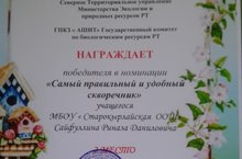 Экология министрлыгы һәм Мәгариф идарәсе белән берлектә үткәрелгән "Кошларны каршылыйк!" конкурсында катнашып, 6 класс укучысы Сайфуллин Риназ 2 урынга даек булды.