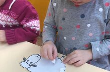 Дети вспомнили навык работы с ватой: скатывать шарик из нее. Продолжали развивиать мелкую маторику рук.