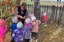 Бүген бакча тирәли сәяхәт ясадык. Балаларда көзге табигатьнең матурлыгына соклана белү, күзәтүчәнлек һәм кызыксынучанлык сыйфатлары тәрбияләдек. Агачларны аерым билгеләре ( кәүсәләре, яфраклары) буенча таный белү күнекмәләрен үстердек.