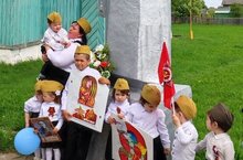 Балалар белəн "Алар безгə Жиңү бүлəк итте" дигəн тема буенча эшлəдек. Балаларга ветераннарыбызнын Бөек Ватан сугышында күрсəткəн батырлыклары турында белемнəр бирдек.Аларда патриотик хислəр, Ватанга мəхəббəт тəрбиялəргə тырыштык.