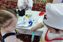 "Курчакны, киендер! "уены ярдəмендə балаларнын профессиялар турында күзаллауларын ныгыттык. -