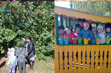 Осень – одно из благоприятных времён года для наблюдений за изменениями в природе и осуществить их можно на прогулке. Ведь прогулка для детей всегда интересное событие. Это источник нового опыта и впечатлений. Осеннее ненастье, конечно же, сокращает время пребывания на свежем воздухе, но солнечная осенняя погода – только и манит к себе. Вот и сегодня мы со своими малышами совершили увлекательную, занимательную и познавательную прогулку на тему «Мы по садику гуляли…». Двигаясь вперёд по дорожкам участка, малыши наблюдали как ветер листьями шуршит, и с деревьев их срывает. Сколько же увлекательного, полезного, интересного узнали и увидели малыши, путешествуя по территории детского сада, получили новые знания об окружающем, что вызвало у детей радостные крики, восторг, удивление. Дети наглядно увидели осенние изменения в природе. Узнали о том, почему осень называют «золотой». Какое же дерево самое красивое? Конечно же «Берёзка!» Малыши долго полюбовались её красотой, с нежностью обняли. Рябинка словно притянула малышей своим веточкам с ажурными листочками. Как же хочется постоять под ними еще подольше. Да и другие деревья привлекли внимание детей, .например ели. Они у нас и зимой и летом всегда зеленые. И у них оказывается не листочки растут , а иголки. Несмотря на то, что прогулка проводилась на территории детского сада, то и здесь можно всегда увидеть много интересного. Нужно только помочь детям заметить и разглядеть всю красоту окружающей природы. А еще много интересного узнали про яблони. Чтобы яблоки выросли румяными и сочными, человек должен заботиться о яблонях, на которых они растут. Их надо поливать, рыхлить под ними землю, удобрять, обрезать сухие ветки. А в конце прогулки малыши с удовольствием собрали свои ведерки спелые , вкусные, румяные яблочки.