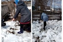 Бүген без коллектив белән кабат өмәгә чыктык. Бакча территориясендә кар әле күп булганлыктан без бөтен көчне кар таратуга куйдык.