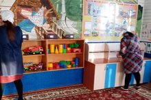 В связи с резким увеличением количества заболевших детей мы с сотрудниками нашего детского сада провели генеральную уборку . Сделали дезинфекцию во всех помещениях детского сада, сквозное проветривание в спальной,игровой комнате.