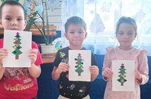 Cегодня на занятии по «Аппликации» сделали новогоднюю открытку. Закрепили знания о цветах (красный, синий, желтый),о геометрических формах (треугольнике, круге). Учили составлять композиции из готовых геометрических фигур по образцу, выкладывать размерный ряд из трех предметов одинаковой формы, располагать их в определенной последовательности. Воспитатель старалась создать предпраздничную атмосферу у детей, привлечь детей к творческой деятельности.
