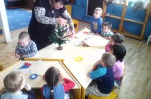 Яңа елга әзерлек эшләре башланды: аппликация белән чыршыга, бүлмә бизәргә уенчыклар ясау, кыш бабай, кар кызлары сыннары ясау.