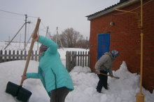 Субботникка безгә ярдәмгә балалар, ата - аналар килде. Территорияне акрынлап кардан чистарта башладык. Бу эш утырып эшләгән кешеләр өчен аеруча файдалы.