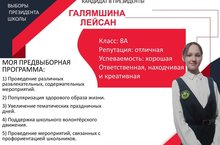 По результатам голосования Президентом школы стала Галямшина Лейсан! Поздравляем! Удачи и успехов в дальнейшей работе! Всё лучшее впереди! -