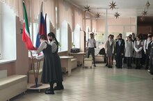 13 марта учебная неделя в школе традиционно началась с вынесения флагов Российской Федерации и Республики Татарстан, исполнения Государственных гимнов.