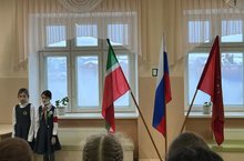 6 января учебная неделя в школе традиционно началась с вынесения флагов Российской Федерации и Республики Татарстан, исполнения Государственных гимнов.