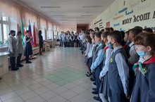Мәктәп укучылары өчен яңа уку атнасы традиция буенча флаг һәм гимн башкарудан башланды.