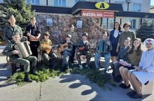 Наша школа подготовила инсталляцию, посвященную 77-ой годовщине победы в Великой Отечественной войне. Учениками 7 Б класса была представлена песня "Смуглянка" из кинофильма " В бой идут одни старики".