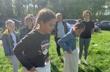 Җәйге хезмәт практикасы 2021. 5 Б сыйныф укучылары мәктәп яны участогында әнә шулай бердәм һәм җаваплы эшлиләр.